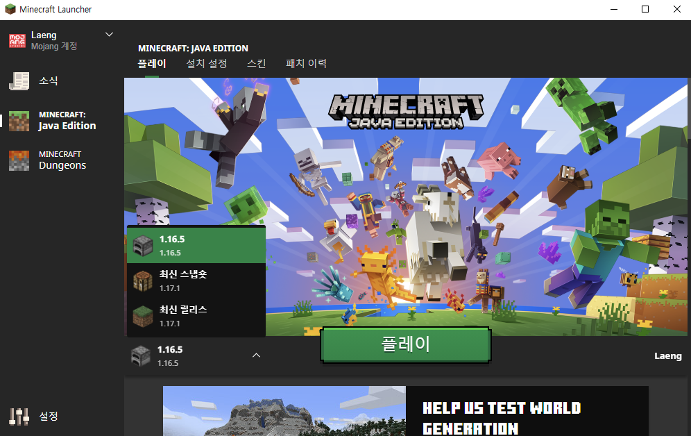 마인크래프트를 실행하기 위해서는 마인크래프트 공식 홈페이지에서 런처를 다운로드 받아 컴퓨터에 실행 해야 합니다.